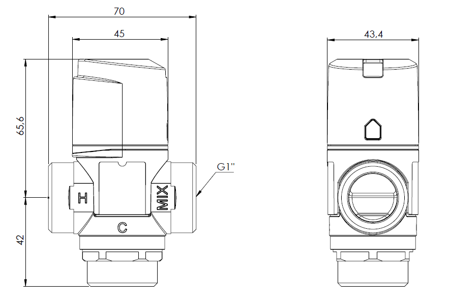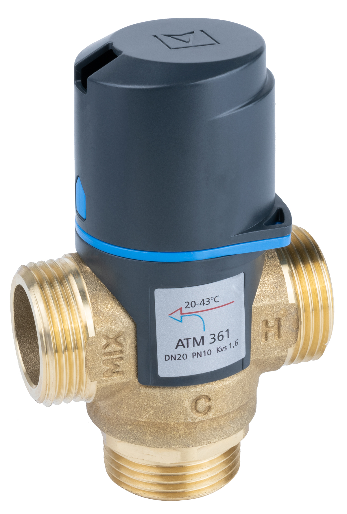 Zawór regulacyjny termostatyczny do wody ciepłej AFRISO ATM 361 mosiądz GZ 1'', DN 20, zakres temp. 20-43'C, Kvs 1.6 m3/h, maksymalna temperatura 90'C, maksymane ciśnienie 10 bar