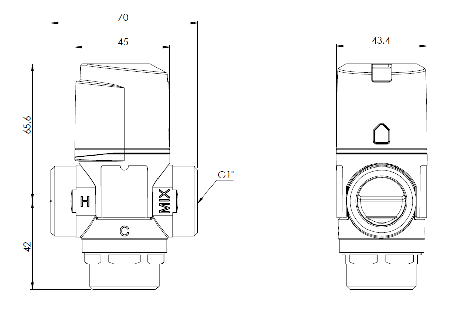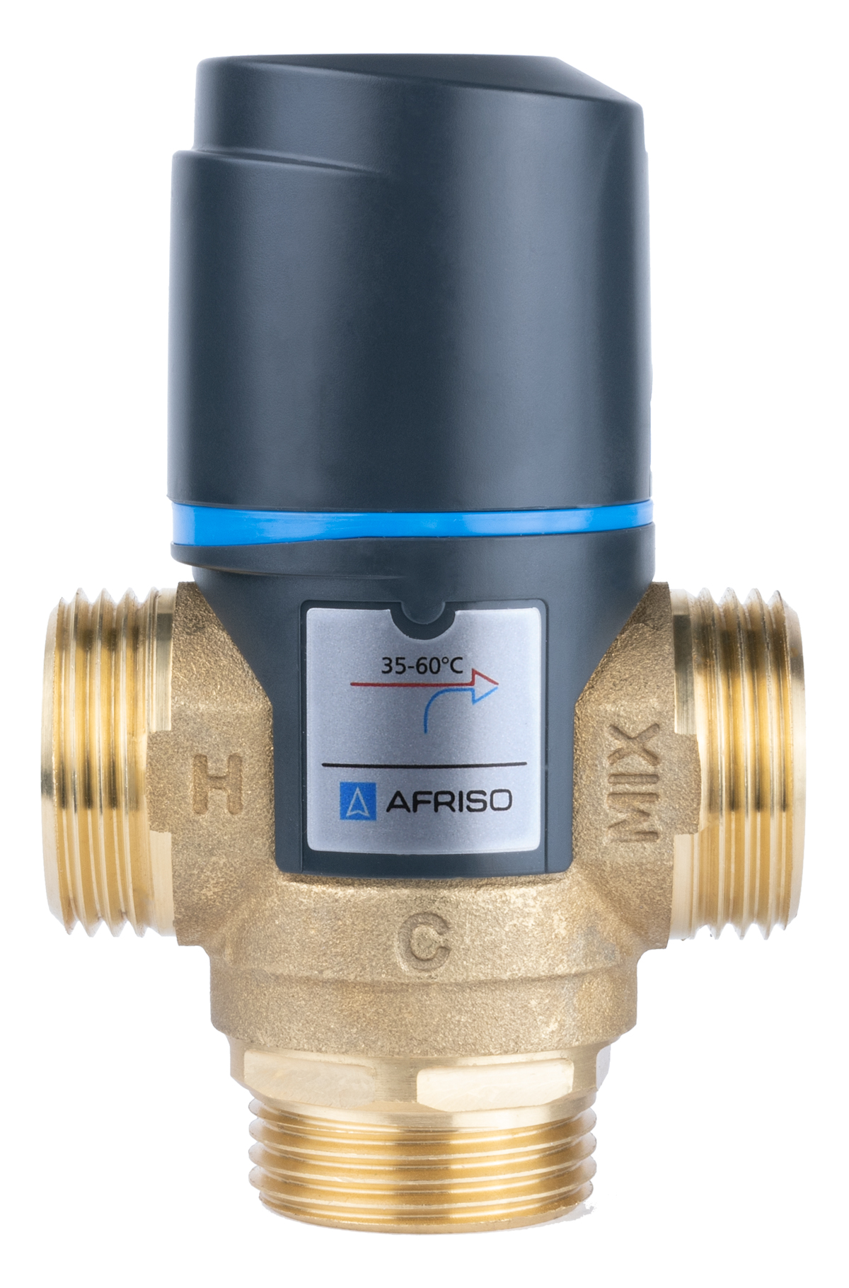 Zawór regulacyjny termostatyczny do wody ciepłej AFRISO ATM 563 mosiądz GZ 1'', DN 20, zakres temp. 35-60'C, Kvs 2.5 m3/h, maksymalna temperatura 90'C, maksymane ciśnienie 10 bar