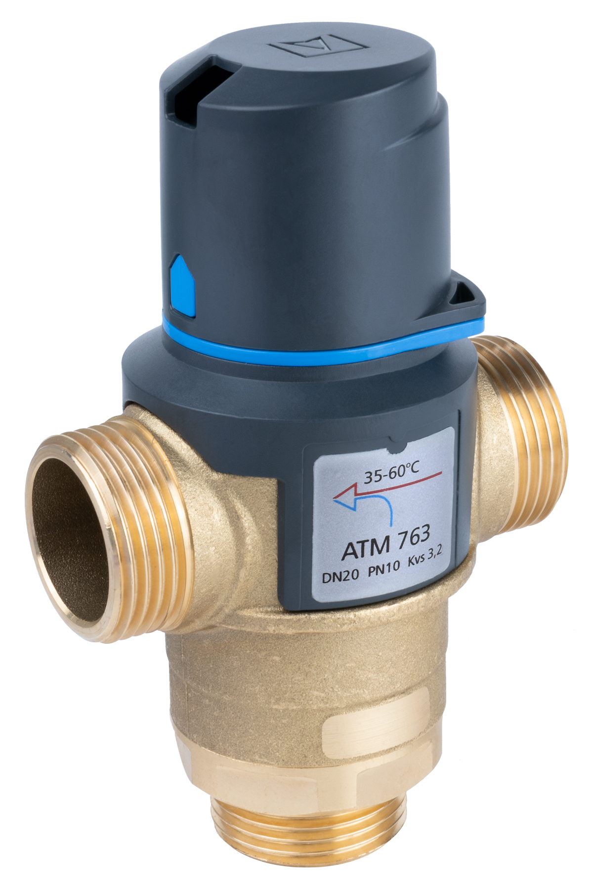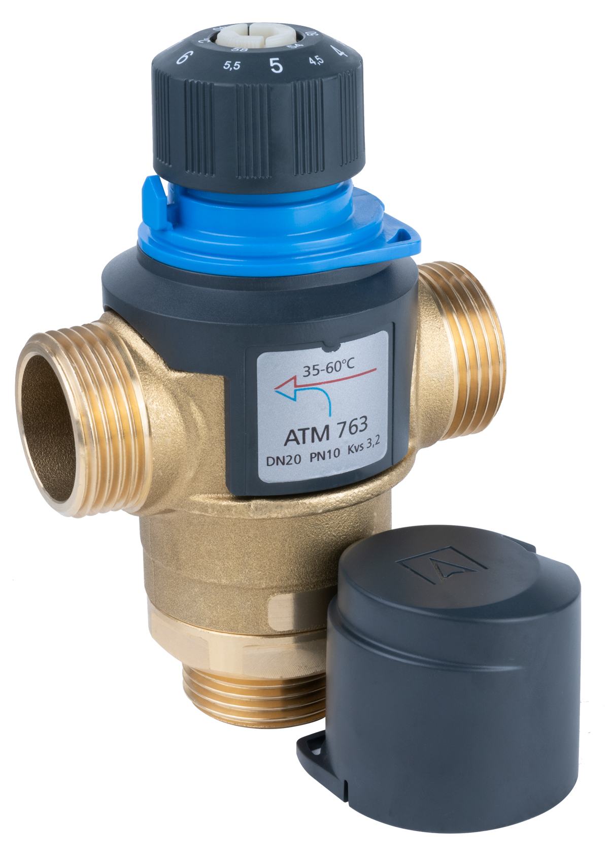 Zawór regulacyjny termostatyczny do wody ciepłej AFRISO ATM 763 mosiądz GZ 1'', DN 20, zakres temp. 35-60'C, Kvs 3.2 m3/h, maksymalna temperatura 110'C, maksymane ciśnienie 10 bar