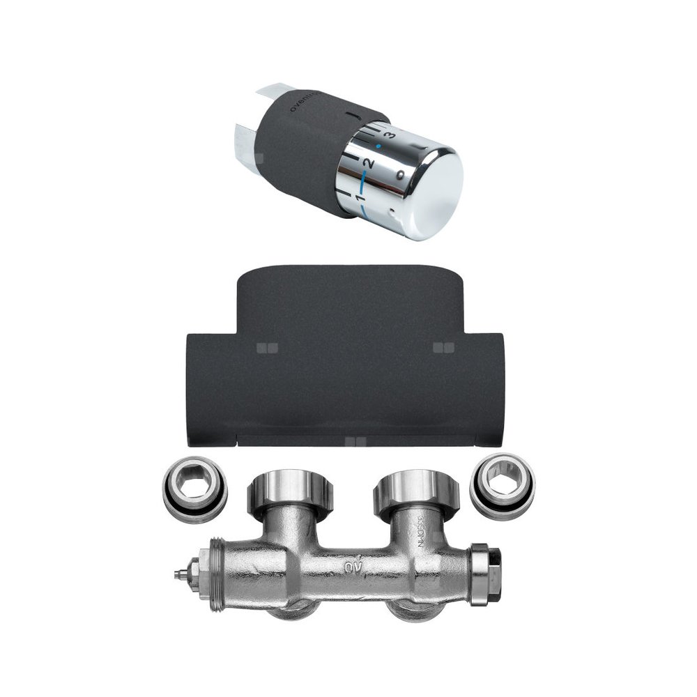 Zawór termostatyczny kątowy, zestaw, kolor Anthracite Grey