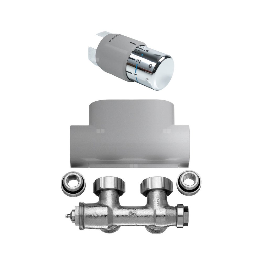 Zawór termostatyczny kątowy, zestaw, srebro błyszczące Metallic