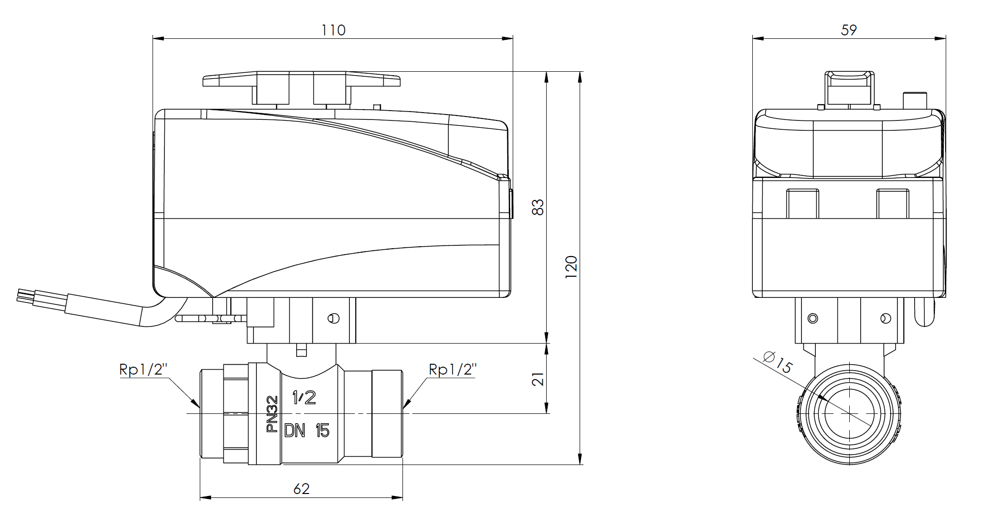 Zawór wodny AFRISO BEV 230 V AC GW 1/2'' x GW 1/2''