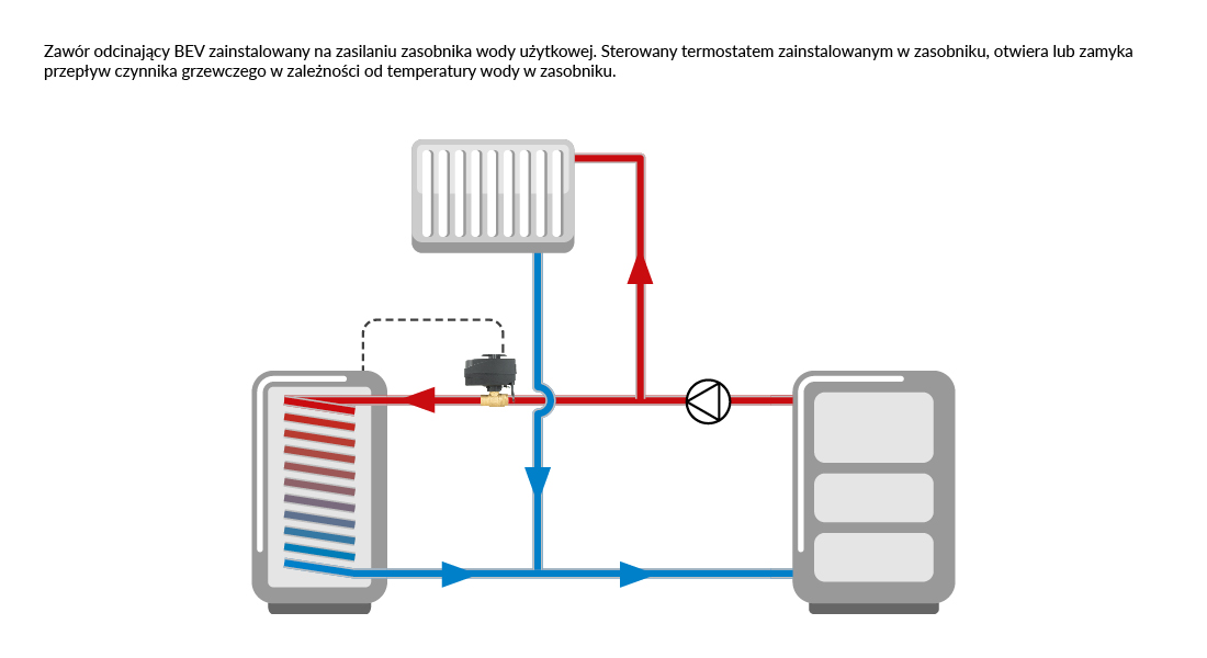 Stosowane w instalacjach grzewczych, chłodzących i c.w.u.Zamykają lub otwierają przepływ przez daną część instalacji lub konkretny odbiornik ciepła.