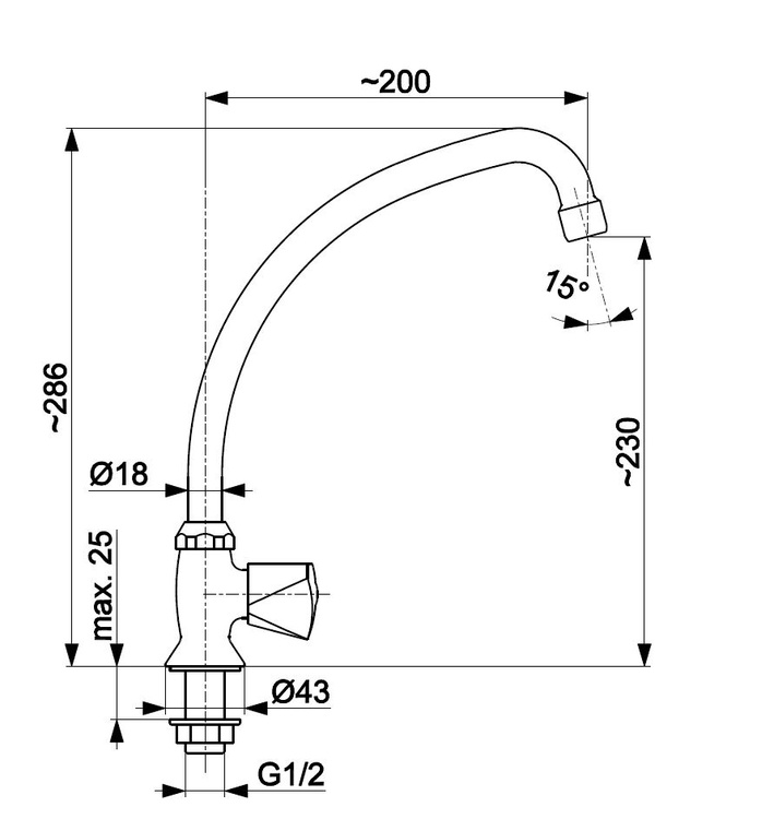 Zawór wypływowy umywalkowy stojący z wyl. L=145 mm