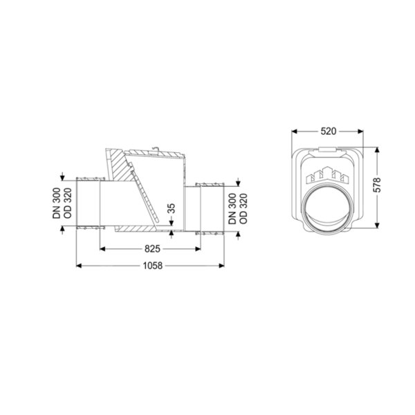 KESSEL Zawór przeciwzalewowy Multitube, ścieków Ścieki bez fekaliów, wielkość nominalna (DN) 300, zabudowa w ziemi, mechaniczna klapa zwrotna, wymiar zewnętrzny (DZ) 320 mm, zamknięcie pokrywy przykręcony