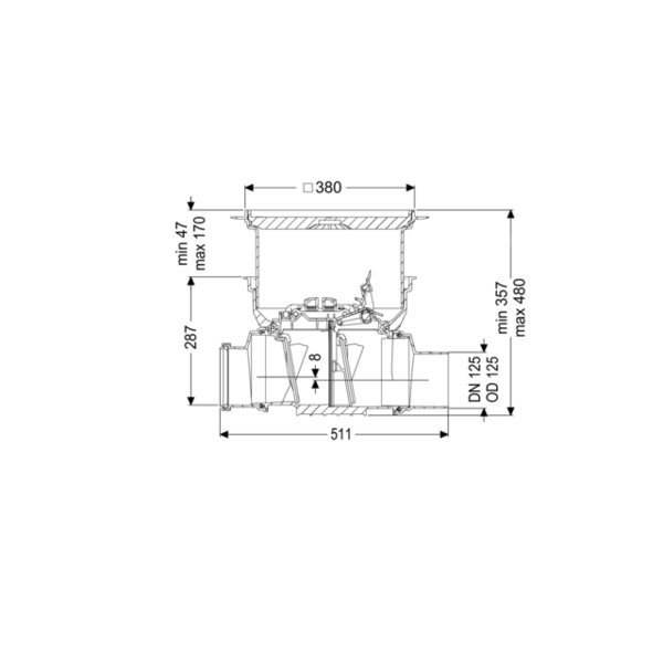 Zawór zwrotny Staufix DN 125 z pokrywą pod płytki z 1 klapą z tworzywa i 1 klapą ze stali nierdzewnej