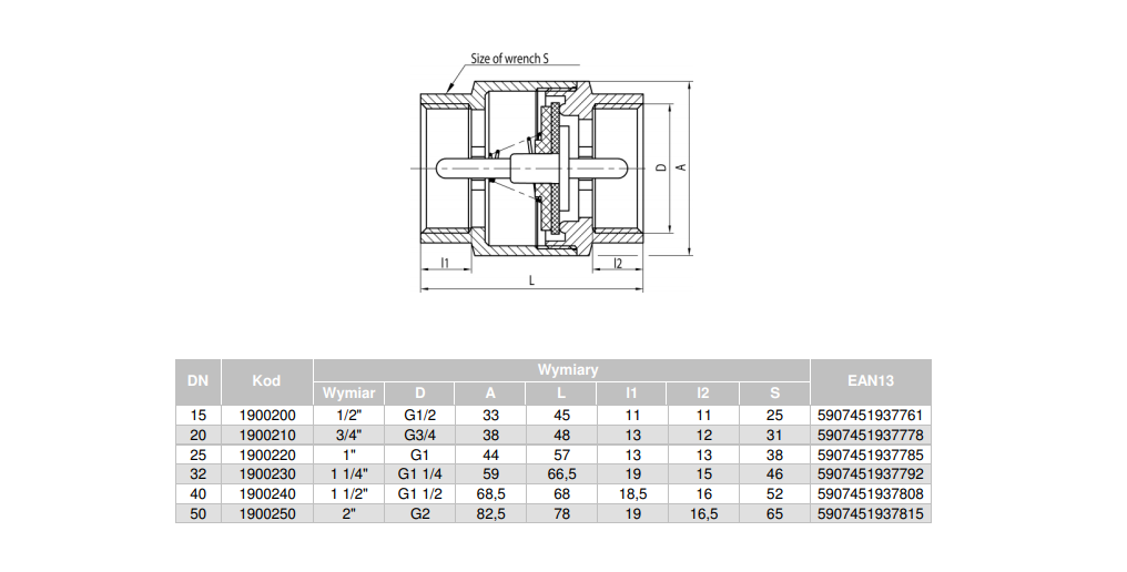 Zawór zwrotny VALVEX Tiger Plus 3/4'' GW PN 10 max. 120'C