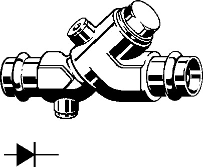 Easytop LF -zawór zwrotny z SC-Contur labs-frei (odtłuszczone) (opakowanie pojedyncze) - przyłącza zaprasowywane, przyłącze zaprasowywane. Wyposażenie: Obudowa i część górna zaworu z brązu wg DIN 50930-6, gniazdo zaworu ze stali nierdzewnej, przyłącze do prób, korek spustowy G¼, elementy uszczelniające EPDM. Dane techniczne: ciśnienie robocze maks. 1,6 MPa (PN 16) maks. temperatura robocza 90 °C ze znakiem jakości DVGW, nr wzoru 2239LF nr kat. 565 305 DN: 50 d: 54