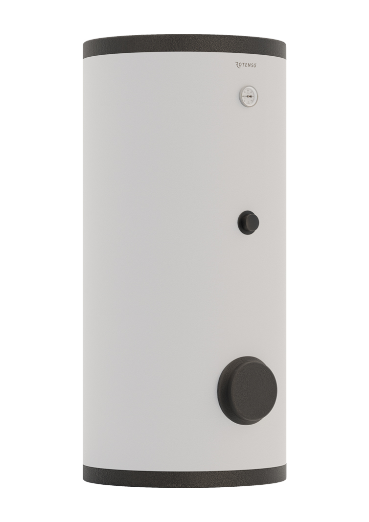 Zbiornik ciepłej wody użytkowej wykonany ze stali emaliowanej ceramicznie z pojedynczą wężownicą spiralną o dużej powierzchni dedykowaną do współpracy z pompami ciepła.Obudowa jest wykonana z grubej warstwy twardej izolacji poliuretanowej, która zapewnia długie utrzymanie temperatury wody użytkowej i tym samym niskie koszty eksploatacji, dodatkowo pokryta materiałem skóropodobnym w kolorze szarym. Zbiornik jest wyposażony w termometr bimetaliczny.W celu zabezpieczenia antykorozyjnego zastosowano emalię ceramiczną nakładaną metodą „na mokro”, równomiernie na całej powierzchni wymiennika. Ochrona zbiornika jest wspierana stosowaniem anod magnezowych. Istnieje także możliwość zastosowania aktywnych anod tytanowych, które nie wymagają bieżącego serwisowania.