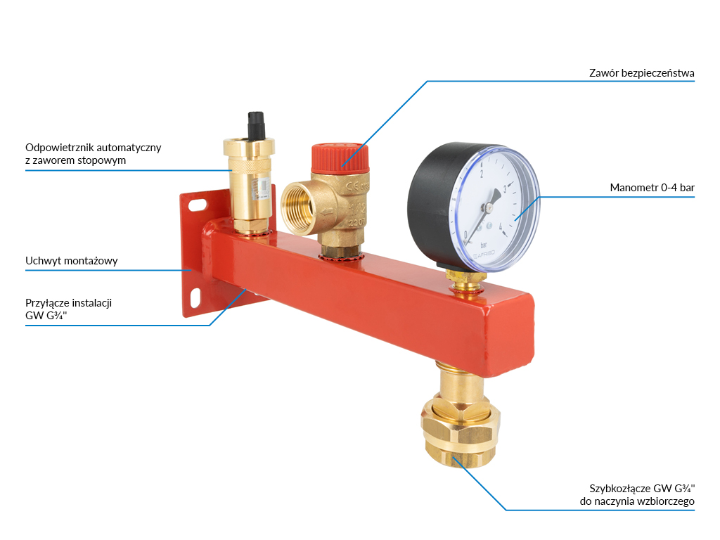 Służy do zamontowania naczynia przeponowego o pojemności do 25 l.