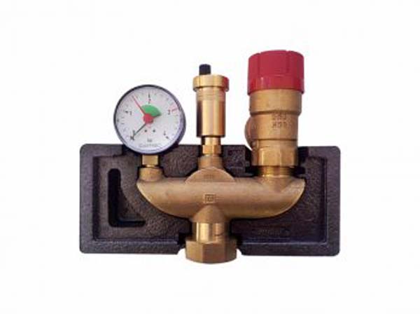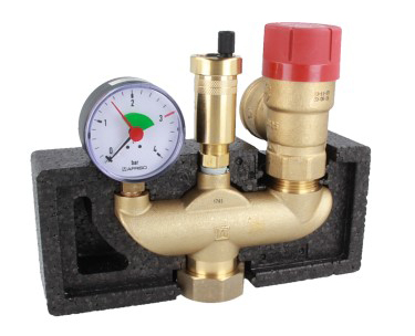Manometr i odpowietrznik wyposażone w zawory montażowe.