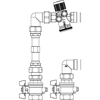 Zestaw do montażu ciepłomierza, kątowy, z zaworami kulowymi i regulacyjno-równoważącym Cocon QTZ DN25, 180-1300 l/h