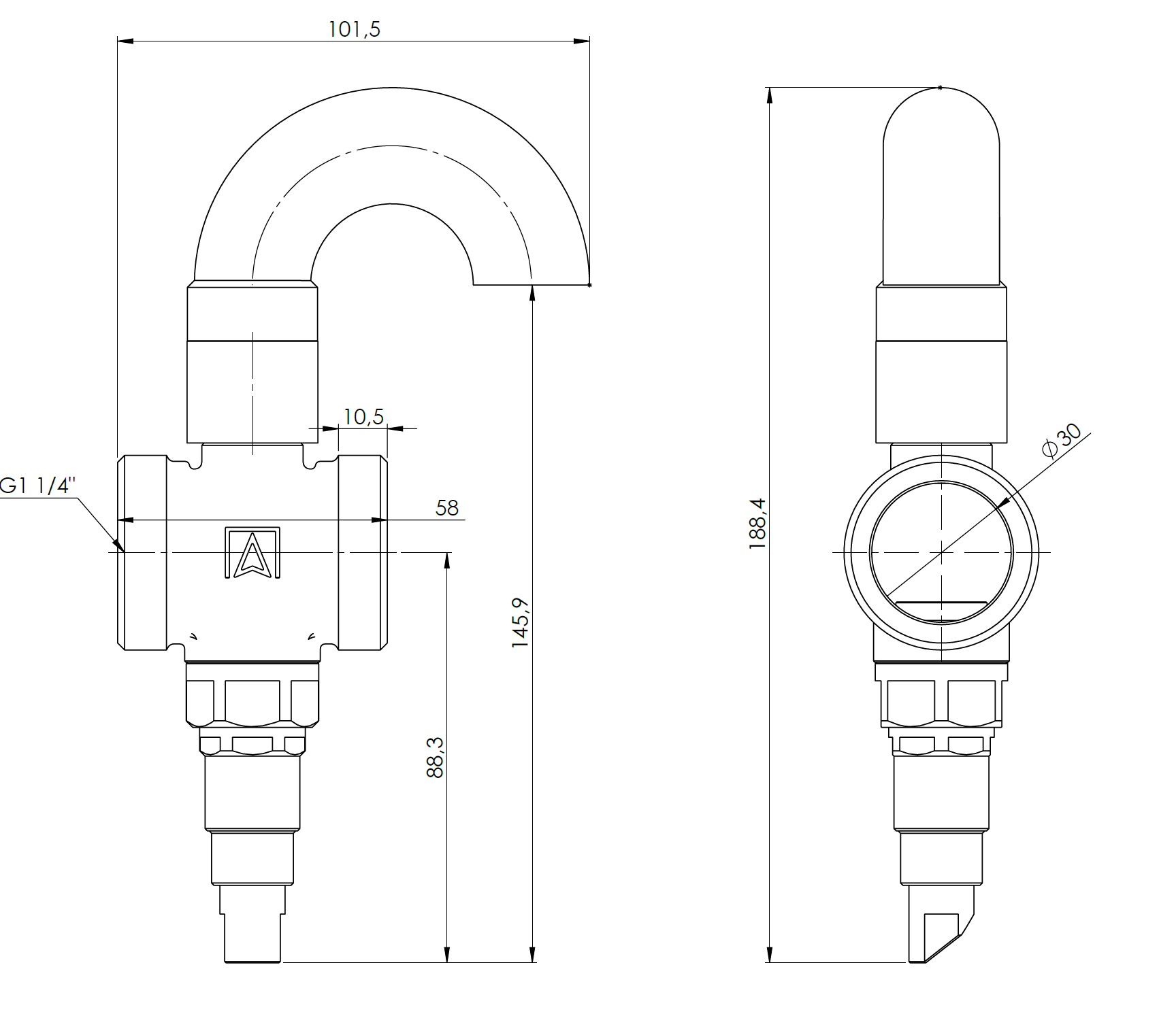 Specjalny kształt wylotu z zaworu zmniejsza napięcie powierzchniowe kropel wody, zapobiegając ich przywieraniu do wylotu z zaworu.