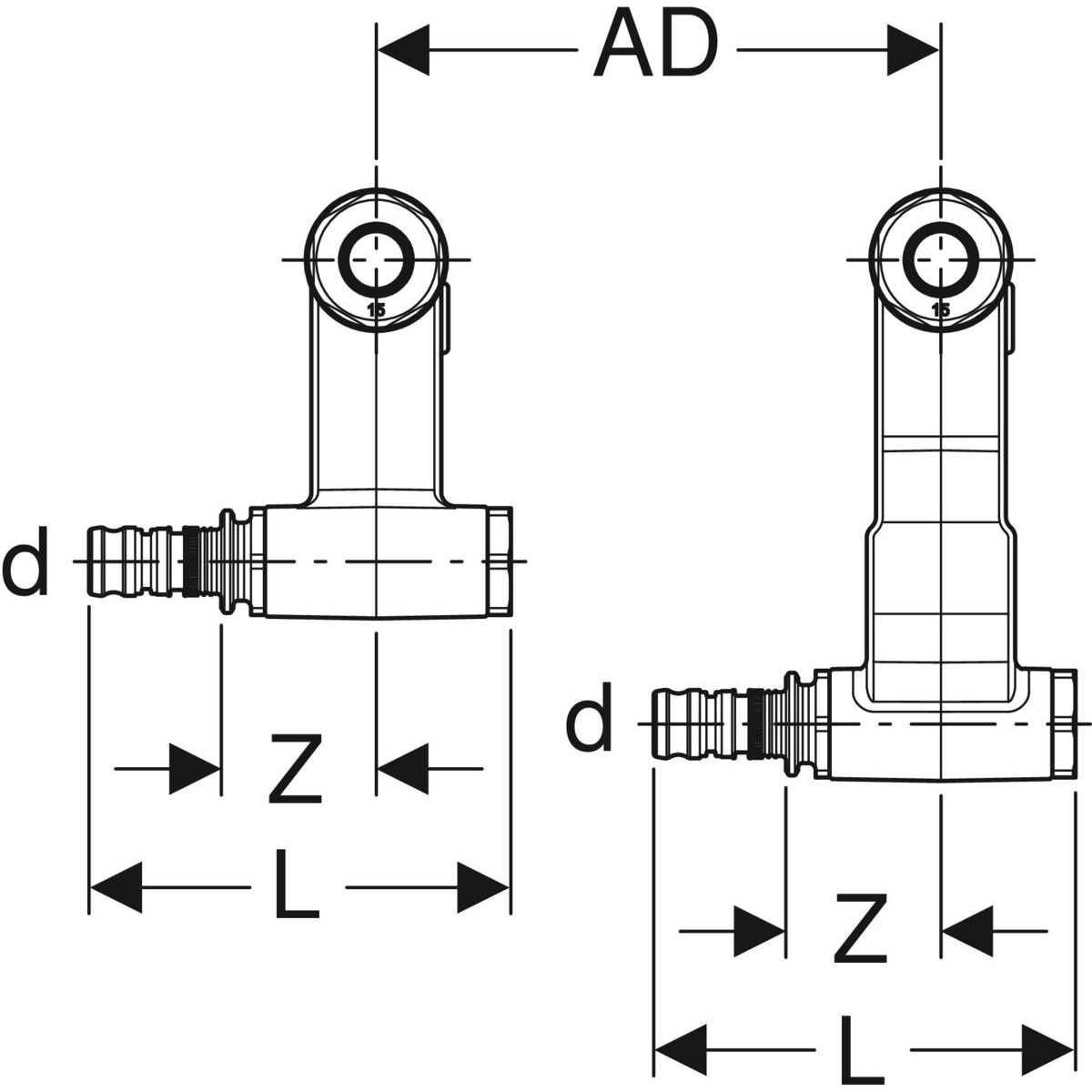 Zestaw końcówek przyłączeniowych do zasilania i powrotu Geberit Mepla, ze śrubunkami przyłączeniowymi do Eurokonus