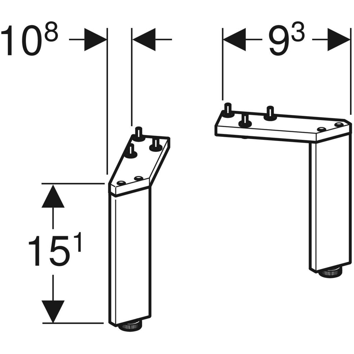 Zestaw nóg Geberit, wąskie (2 szt.): H=15.1–15.4cm, Chrom błyszczący