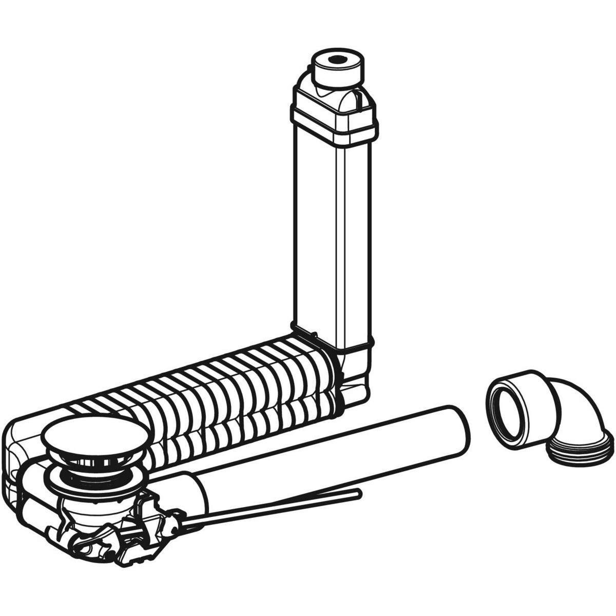 Zestaw odpływowo-przelewowy do umywalki Geberit Clou, model oszczędzający przestrzeń, wąski, uruchamiany za pomocą dźwigni, z pokrywą odpływu: d=32mm, Chrom błyszczący