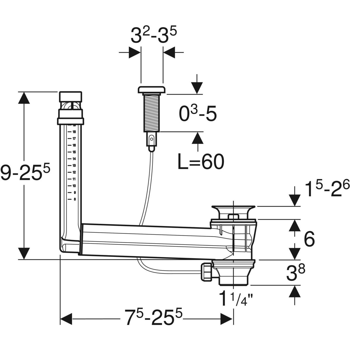 Zestaw odpływowo-przelewowy do umywalki Geberit Clou z cięgłem i pokrętłem: d=32mm, Uchwyt: chromowany z połyskiem