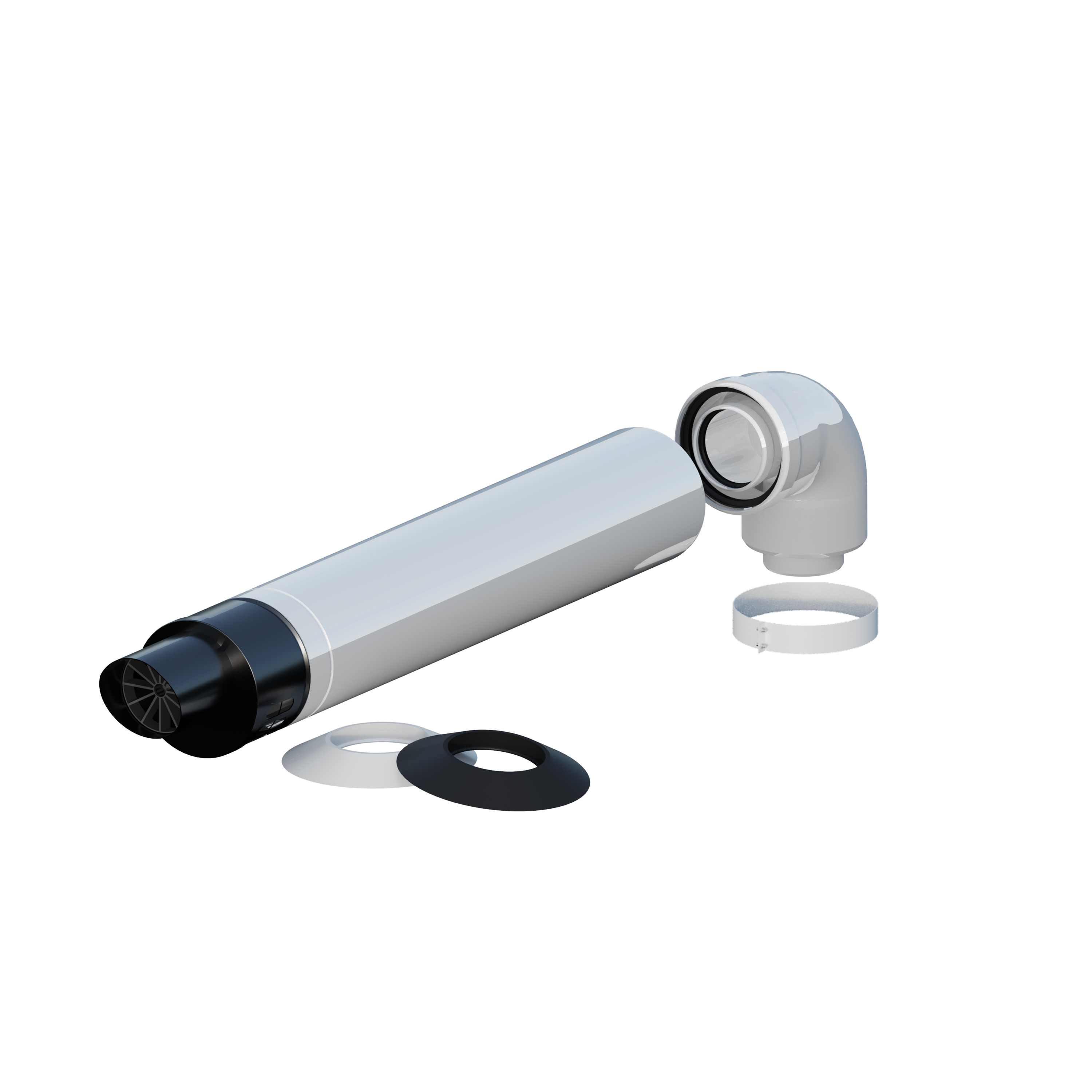 Estetyka wykonania, kompatybilność z dedykowanym producentem, elementy lakierowane zapakowane w dodatkowe opakowanie, uniwersalność, kompletnoć, bardzo łatwy montaż, gwarancja 15 lat. Zestaw zawiera: Kolano koncentryczne przycięte 87° DN 60/100, opaska skręcana DN100, wyjście poziome koncentryczne 855mm DN 60/100, dwie rozety DN100. Kompatybilny z kotlami: Ariston, Vaillant, Beretta, Saunier Duval.