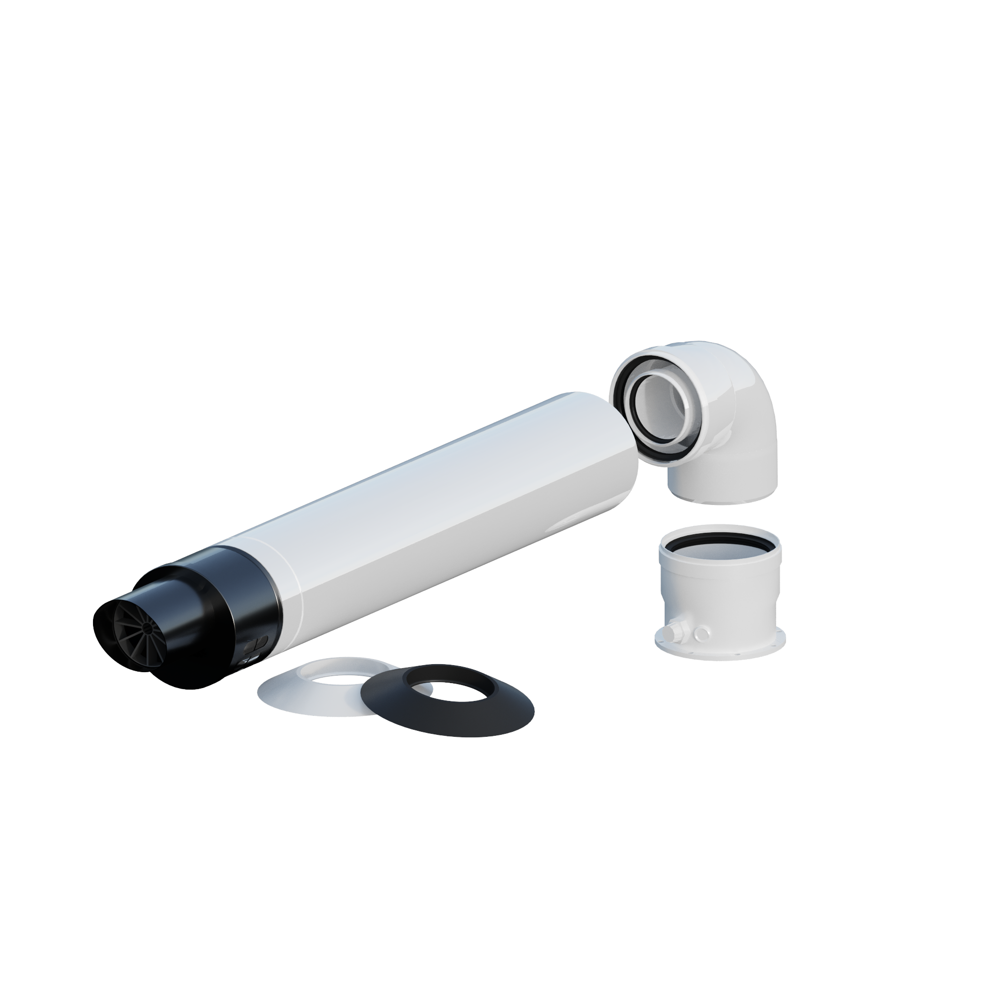 Estetyka wykonania, kompatybilność z dedykowanym producentem, elementy lakierowane zapakowane w dodatkowe opakowanie, uniwersalność, kompletnoć, bardzo łatwy montaż, gwarancja 15 lat. Zestaw zawiera: Adapter Bosch wysoki, kolano koncentryczne 87 DN80/125, wyjście poziome koncentryczne 855mm, dwie rozety DN125. Kompatybilny z kotłami: Bosch, Junkers, Buderus.