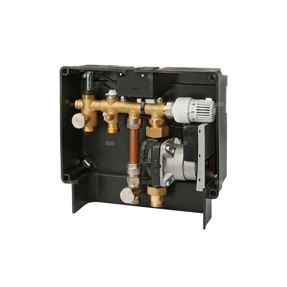 Zestaw do regulacji KOMPAKT/KOMFORT służy do obsługi ogrzewania płaszczyznowego pojedynczego pomieszczenia, pozwalając na regulację w zależności od temperatury pomieszczenia z ograniczeniem temperatury zasilania (zakres nastaw 10 - 50 °C).