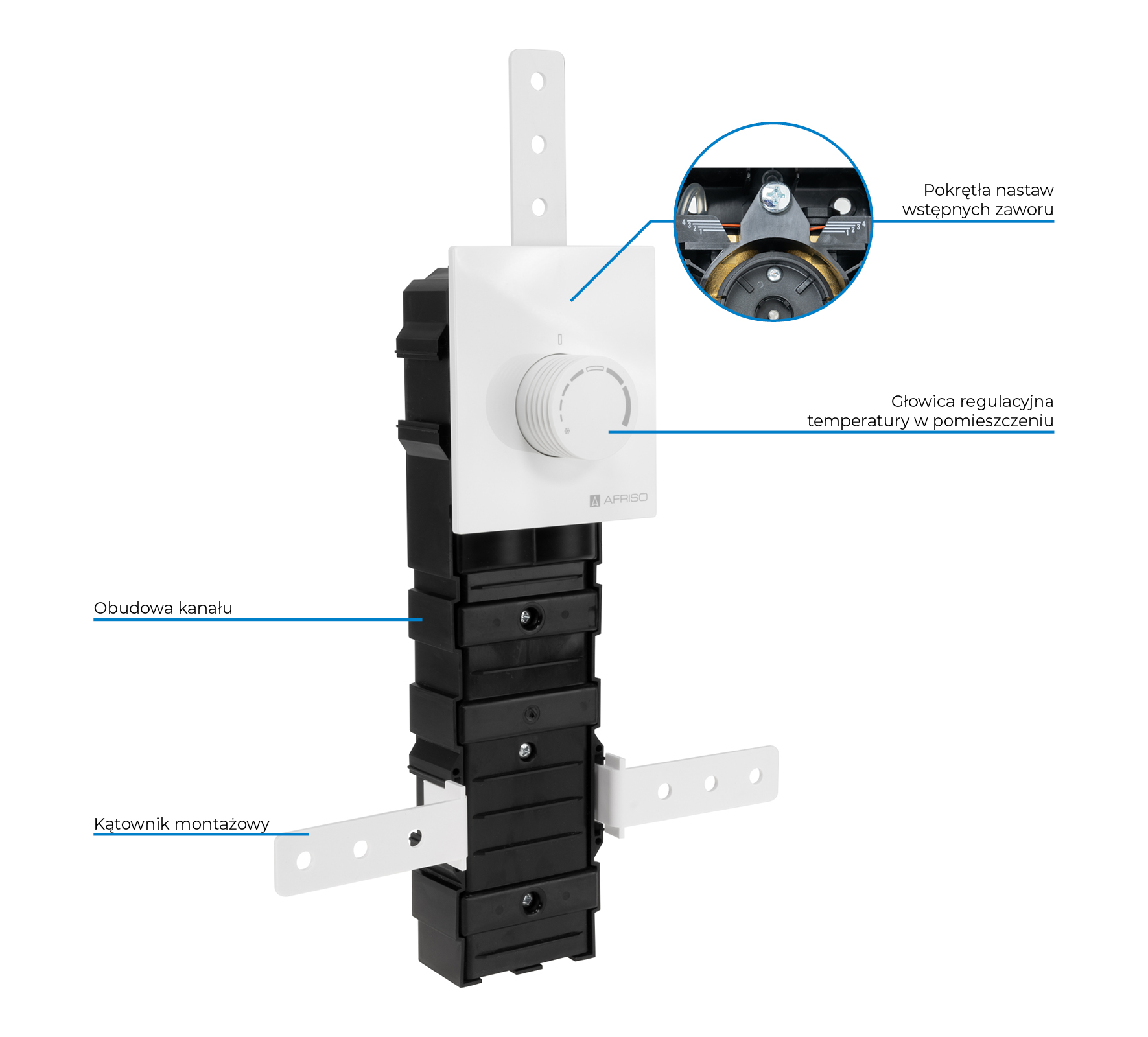 Umożliwia dokładną regulację przepływu, temperatury podłogi i w pomieszczeniu.