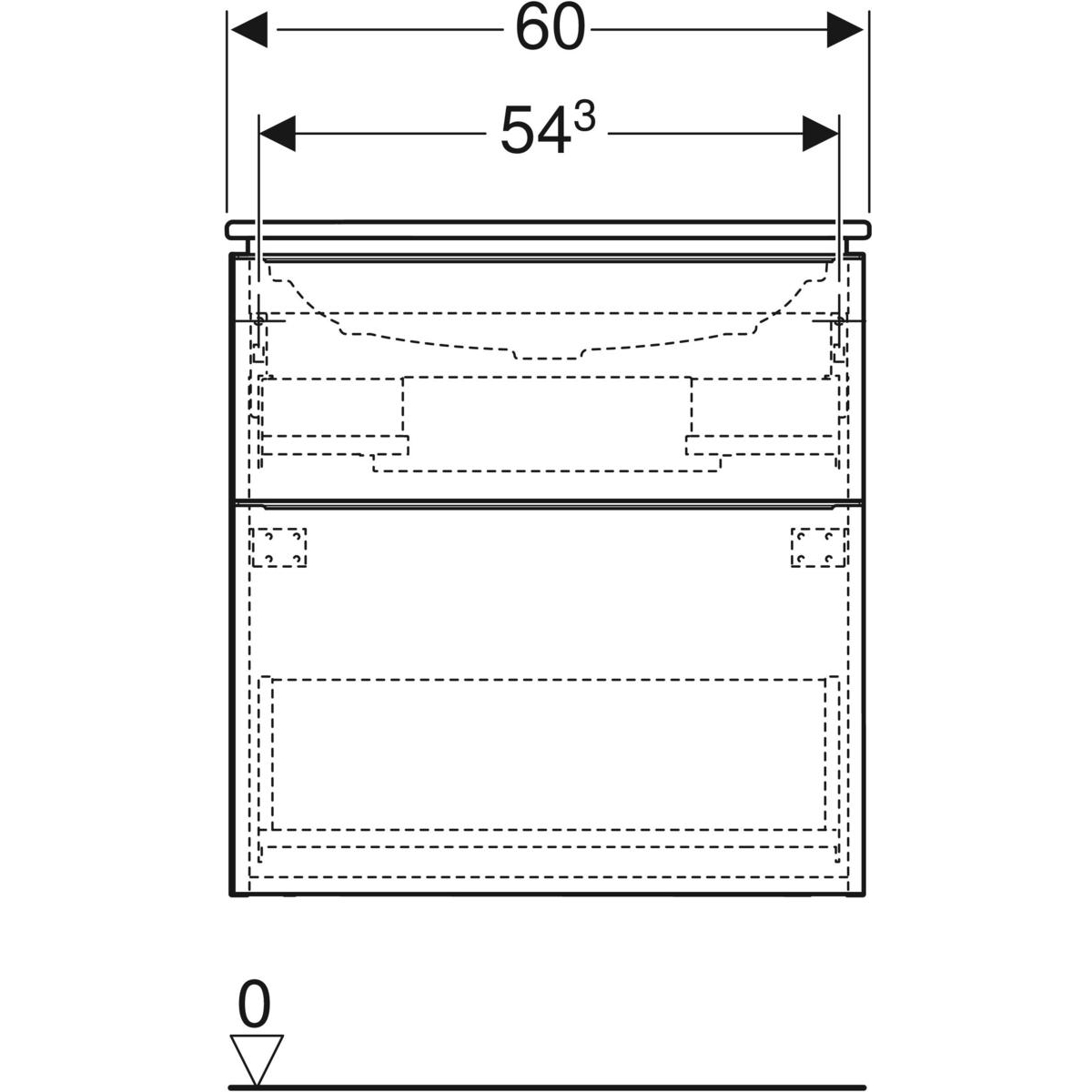 Zestaw umywalki meblowej Geberit iCon slim rim, z szafką pod umywalkę, z dwoma szufladami i zestawem odpływowo-przelewowym do umywalki: B=60cm, Umywalka: biały, Korpus i front: biały / lakierowany na wysoki połysk, Uchwyt: biały / powlekany proszkowo, matowy