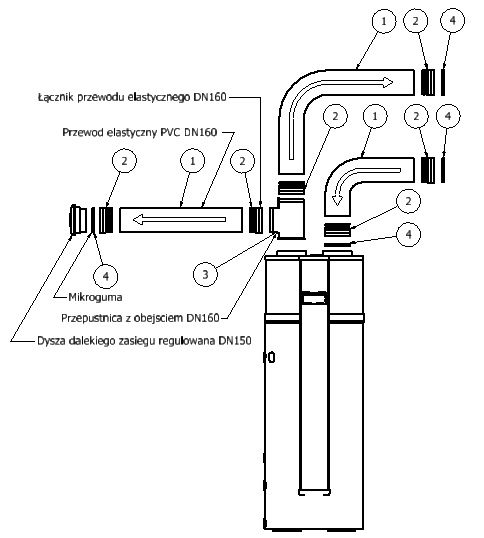 Zestaw wentylacyjny przystosowany jest do wykonania instalacji wentylacyjnej pompy ciepła. Powietrze zasysane jest z zewnątrz, natomiast za pomocą przepustnicy (z ręczną nastawą położenia) możemy tłoczyć je opcjonalnie na zewnątrz budynku lub do pomieszczenia. Jeżeli potrzebne jest zastosowanie dwóch przepustnic (po stronia ssania i tłoczenia powietrza), należy wybrać zestaw wentylacyjny rozszerzony.