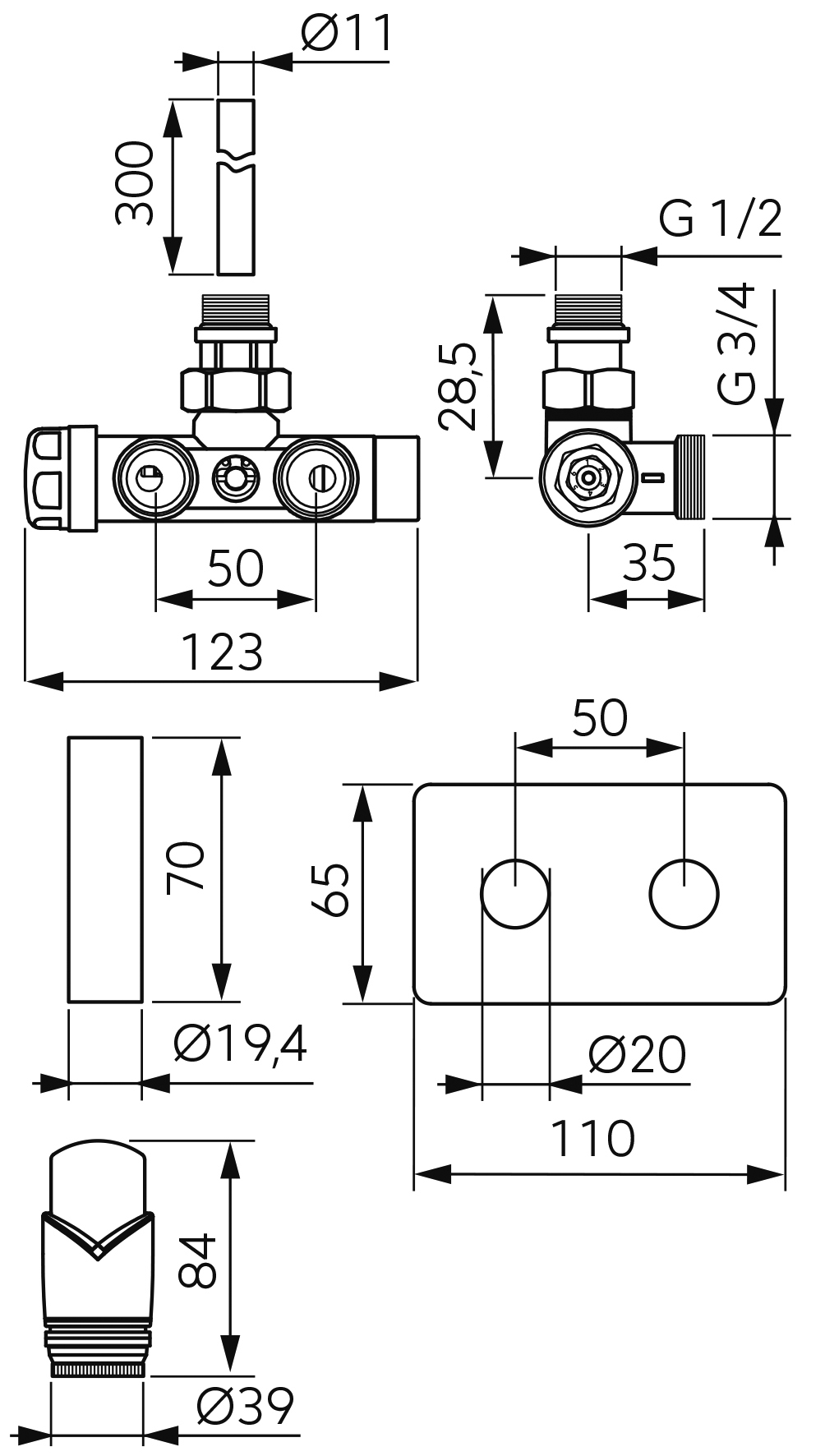 Zestaw zaworu termostatycznego zespolonego kątowego z rurką zanurzeniową, z nastawą wstępną, czarny