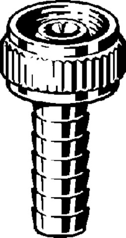Dwuzłączka do węża, mosiądz, uszczelnienie stożkowe. Wyposażenie: Radełkowana nakrętka złączkowa, nr wzoru 1812, nr kat. 129 323, do średnicy wewnętrznej węża: ⅜ gwint nakrętki G: ½