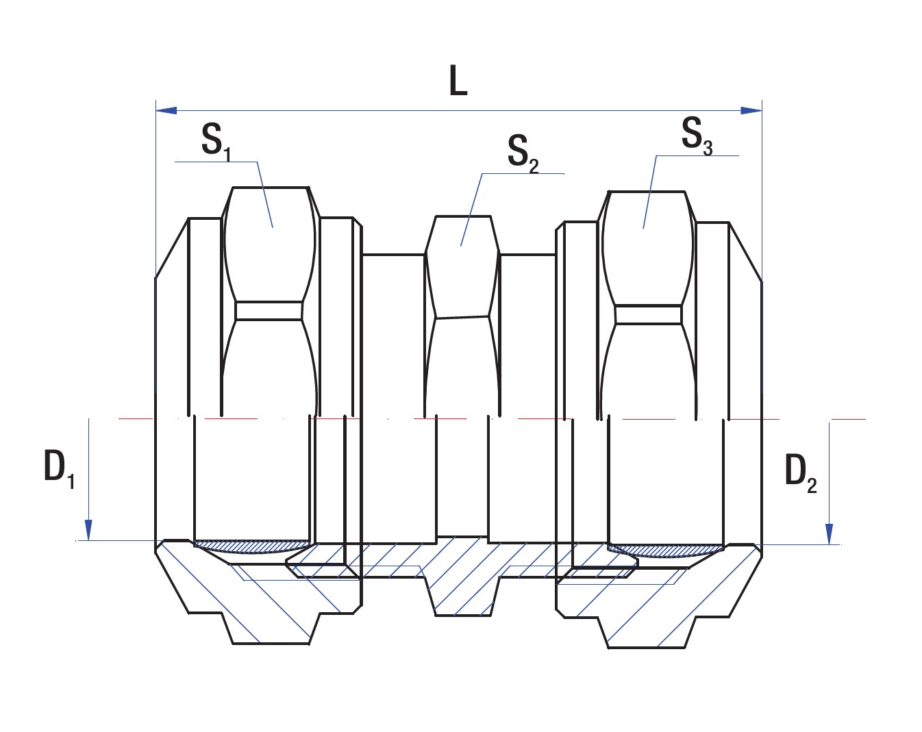 Złącze dwójnik proste RUMET zaciskowe FI 22 x FI 22 mosiądz