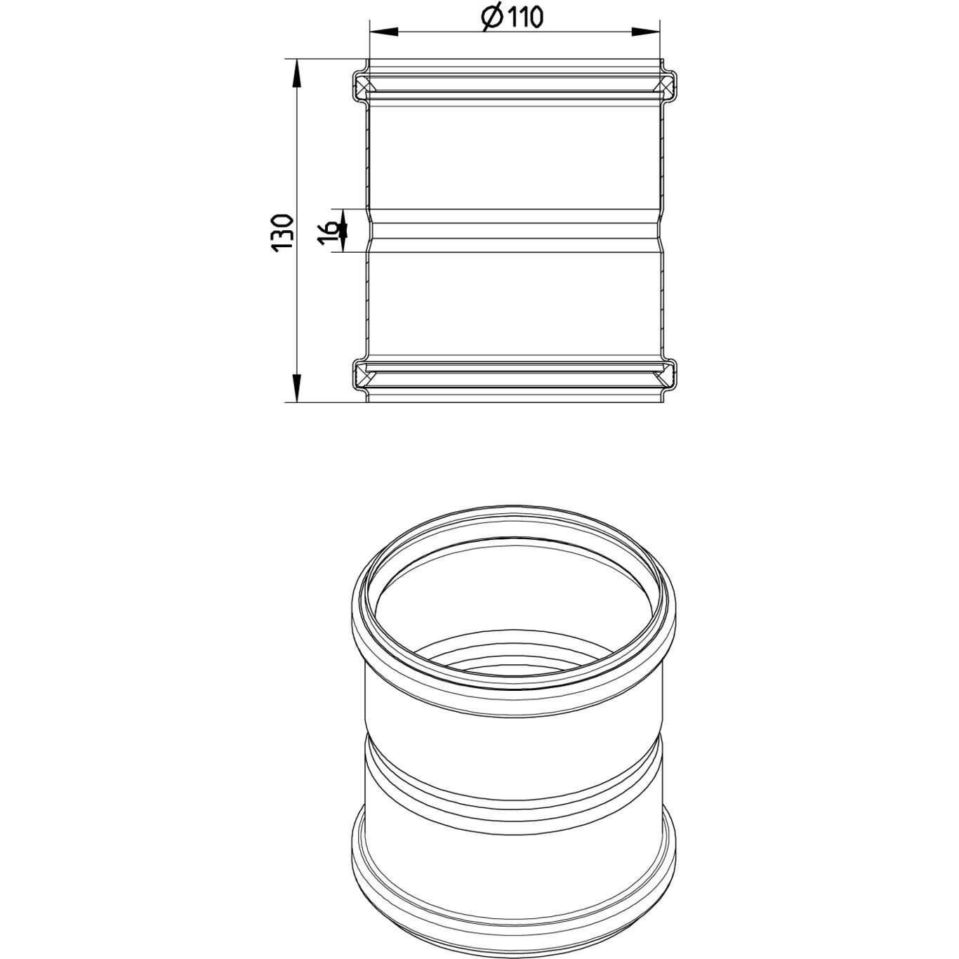 Złącze dwukielichowe DN =110 mm, stal kwasoodporna