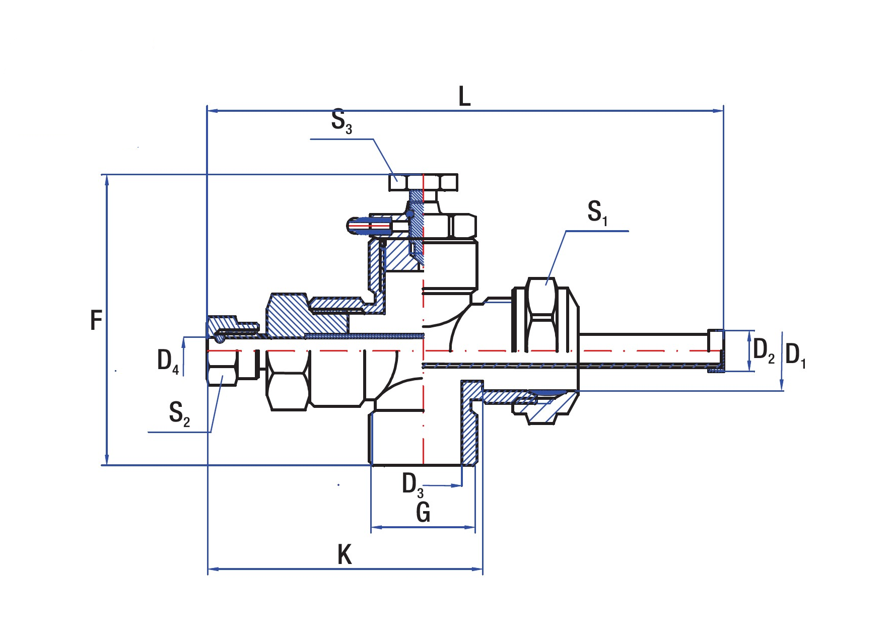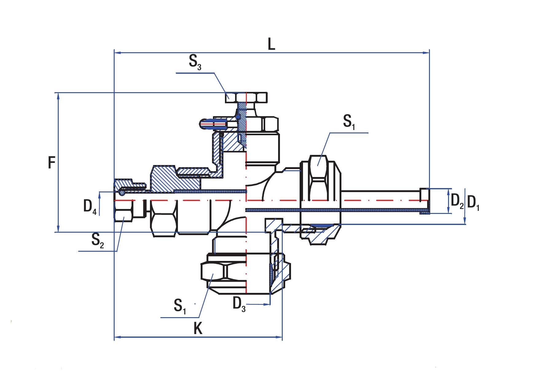 Złącze krzyżowe RUMET z tuleją zanurzeniową Mosiądz 18 mm x 18 mm