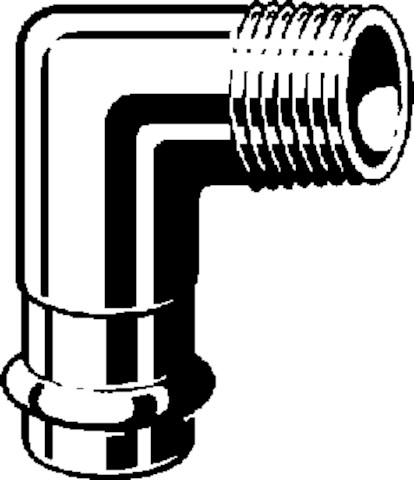 Sanpress-złączka przejściowa kątowa 90°, z SC-Contur, brąz lub brąz krzemowy, przyłącze zaprasowywane, gwint R. Wyposażenie: Element uszczelniający EPDM, nr wzoru 2214.1, nr kat. 335 281, d: 15 R: ½