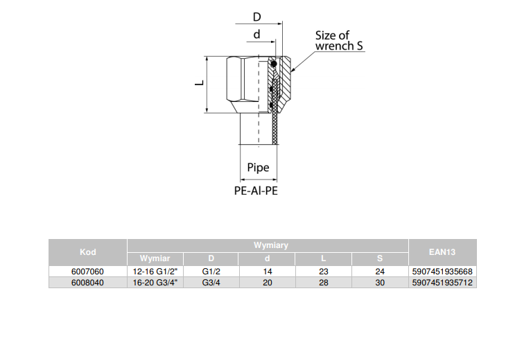 - Przyłączka prosta niklowana stosowana do rur wielowarstwowych w instalacjach wody zimnej, ciepłej i centralnego ogrzewania