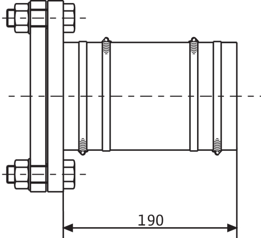 Króciec kołnierzowy do elastycznego podłączania (max. wyrównanie 130 mm) wolnych rurociągów bez kołnierza do rurociągów z kołnierzem Z wężem, opaskami zaciskowymi i osprzętem montażowym