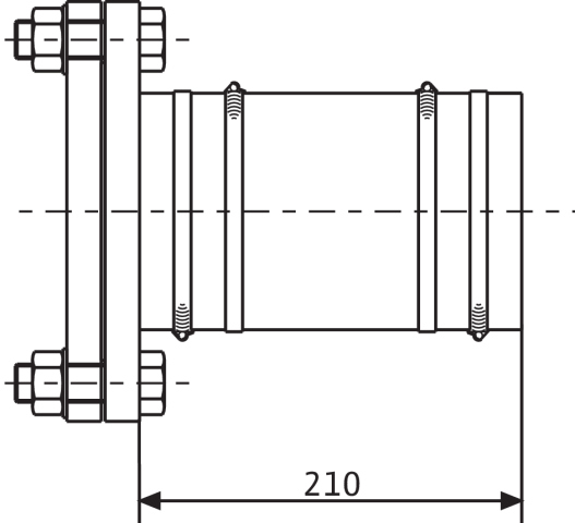 Króciec kołnierzowy do elastycznego podłączania (max. wyrównanie 130 mm) wolnych rurociągów bez kołnierza do rurociągów z kołnierzem Z wężem, opaskami zaciskowymi i osprzętem montażowym