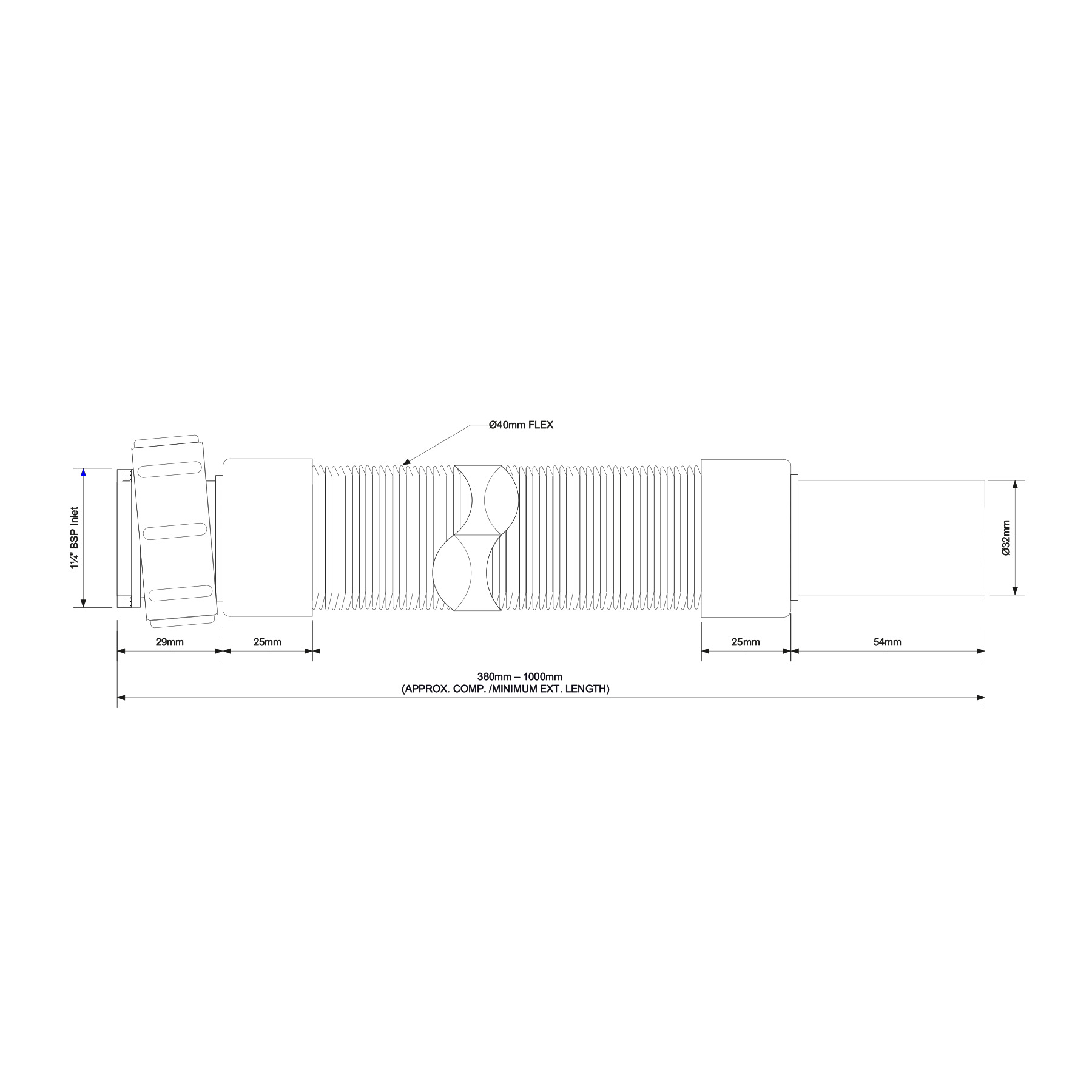 Złączka montażowa harmonijkowa czarna, o długości 1000mm, końcówka nakrętna i prosta 1.1/4″x32mm.