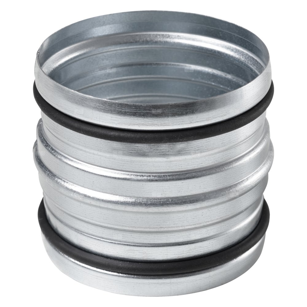 Złącze wtykowe do zwijanych rur spiralnych z ocynkowanej blachy stalowej wyposażone jest w system uszczelnienia z pierścieniem o przekroju okrągłym.