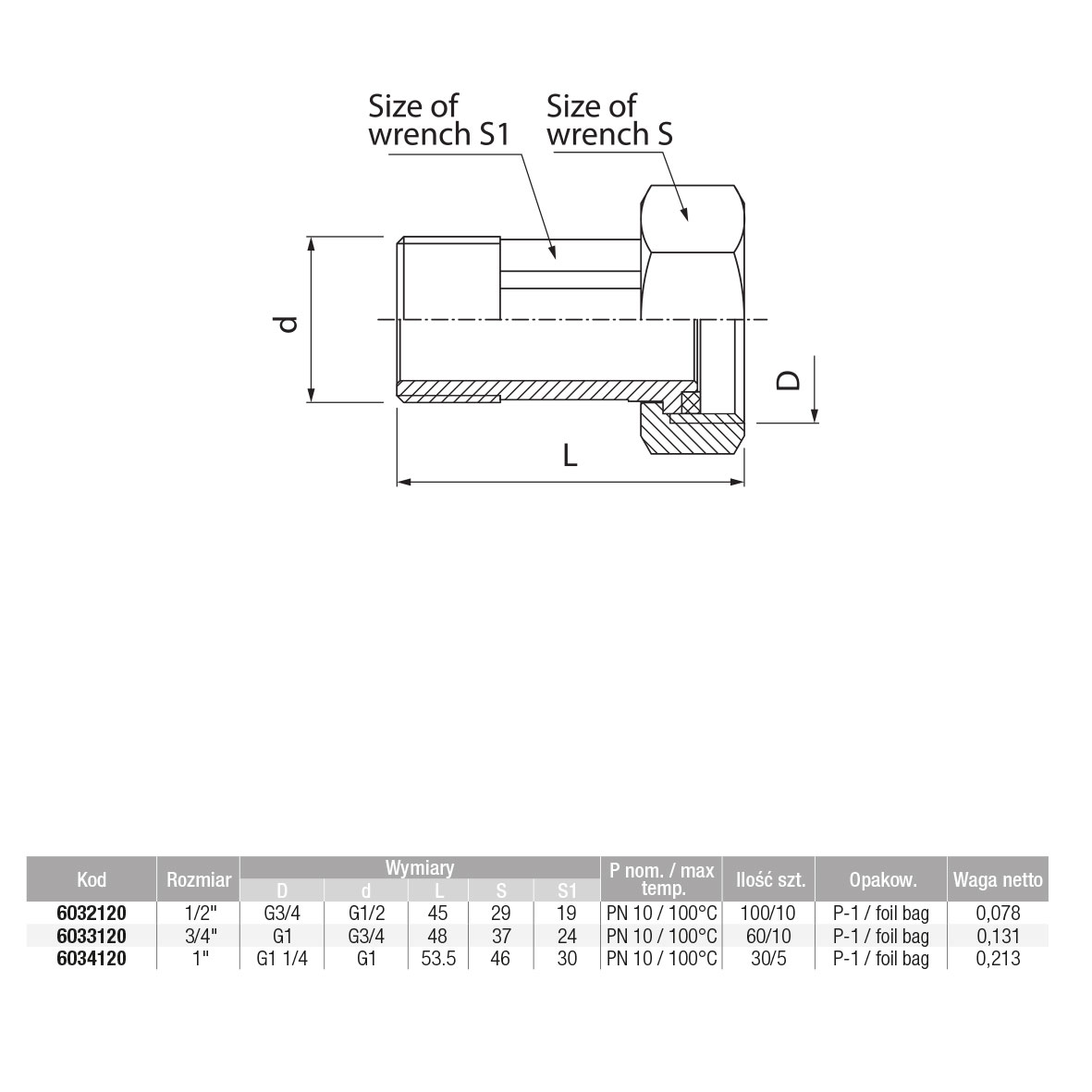 Złączka (śrubunek) śrutowana VALVEX Twist, 3/4'' (GZ x GW)