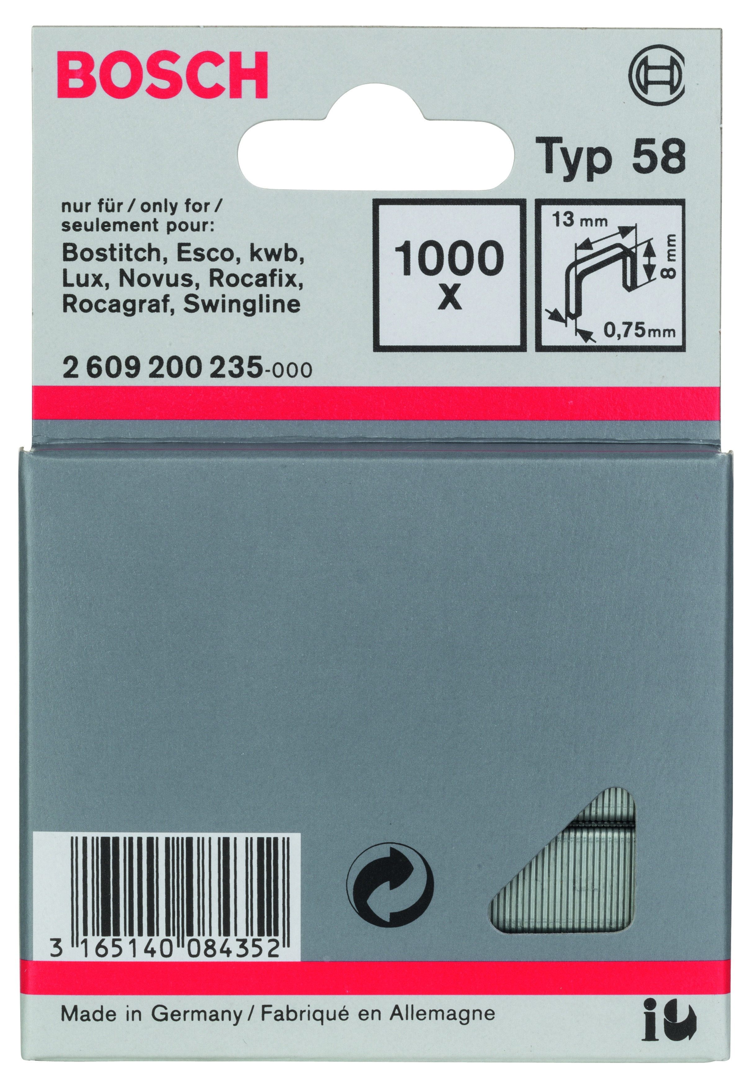 Zszywka z cienkiego drutu, typ 58 13 x 0,75 x 8 mm