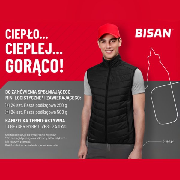 Lato w pełni, ale w Bisan robi się naprawdę gorąco! Firma przygotowała wyjątkową promocję dla swoich klientów – teraz do wybranych zamówień można otrzymać kamizelkę termo-aktywną ID Geyser Hybrid Vest za jedyne 1 zł!