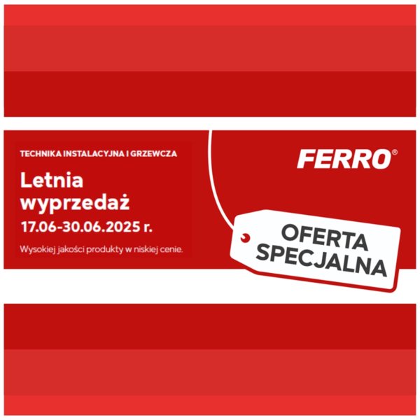 Od 17 do 30 czerwca 2025 roku (lub do wyczerpania zapasów) trwa specjalna wyprzedaż produktów FERRO – zniżki obejmują szeroki asortyment z kategorii techniki instalacyjnej, sanitarnej i grzewczej.